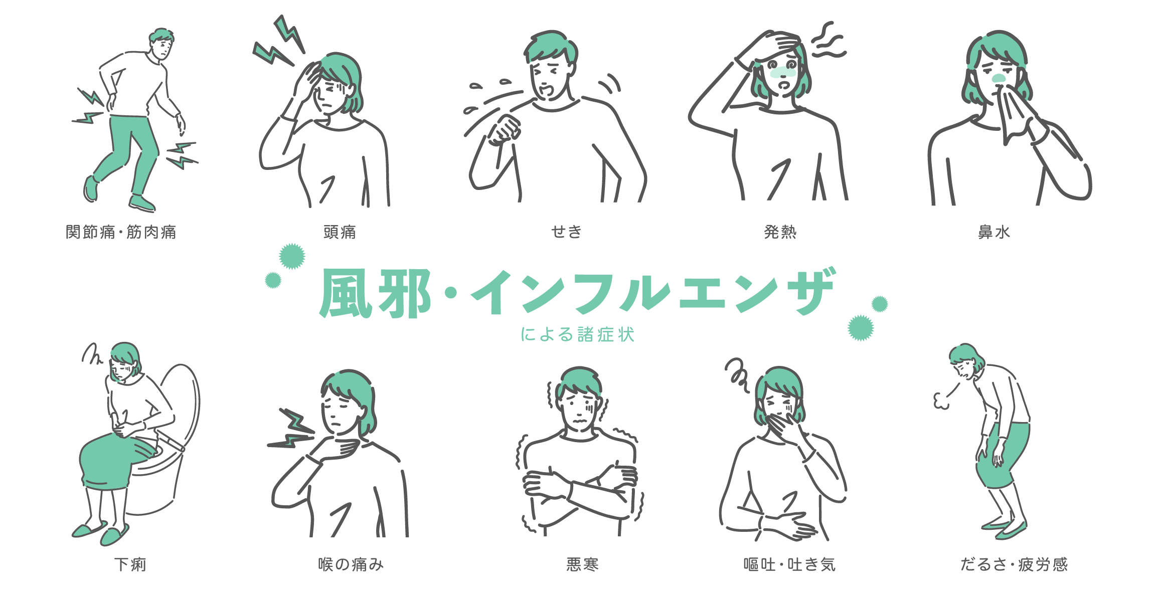 季節・アレルギー症状 風邪・インフルエンザの諸症状イラストセット【発熱・咳・頭痛など10種】