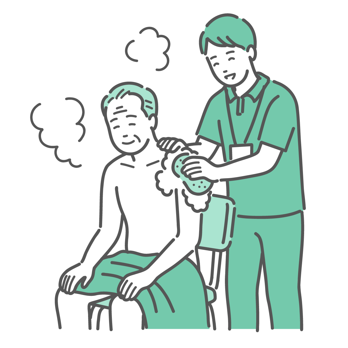 介護・福祉 入浴介助のイラスト(介護士と高齢者)
