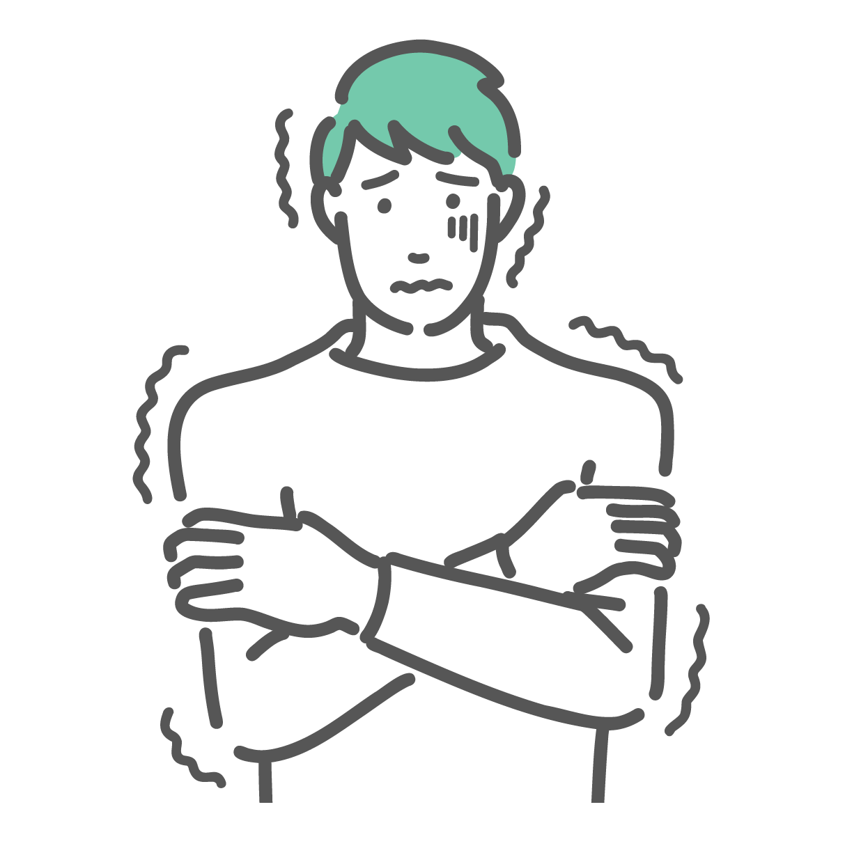 季節・アレルギー症状 悪寒(おかん)がして震えている男性のイラスト