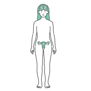 上半身・体幹 脳と子宮・卵巣の繋がりがわかる女性の人体図・全身モデルのイラスト(正面)