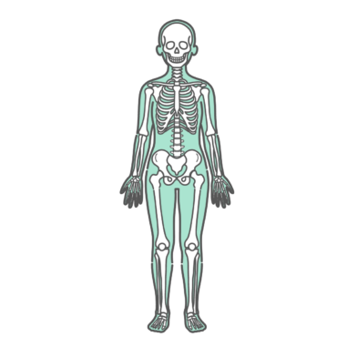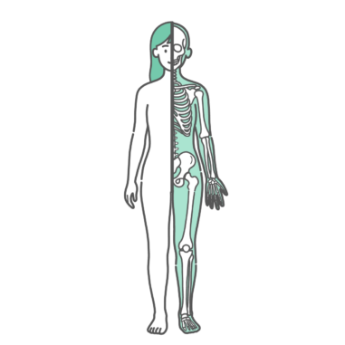 上半身・体幹 骨格が描かれた女性の人体図・全身モデルのイラスト(正面)