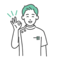 ケーシータイプの白衣(ユニフォーム)を着た、若い男性看護師・医療従事者が笑顔でガッツポーズをしている上半身イラストです。患者さんへの応援や激励、「一緒に頑張りましょう」「目標達成」「リハビリ成功」といった前向きなメッセージを伝えるシーンに最適です。男性看護師をはじめ、理学療法士(PT)、作業療法士(OT)、歯科医師、整体師などのキャラクターとして、クリニックのWebサイトや健康系ブログの読者のモチベーションを高めるコンテンツで大活躍します。