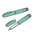 糖尿病患者様が自己注射を行う際に使用する「ペン型インスリン注入器」のキャップを外した状態(針の取り付け部が見えている状態)のイラストです。 インスリン製剤やGLP-1受容体作動薬などの注射ペンとして、幅広くご活用いただけます。 手順の説明図(「針を取り付ける」など)や、薬剤のアイコン、持ち物チェックリストの挿絵などに使いやすい、シンプルで清潔感のあるデザインです。 キャップが閉まった状態のイラスト(別売/別ページ)と組み合わせての使用もおすすめです。