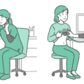 診察室でスクラブ(医療用ユニフォーム)を着た女性医療従事者が、妊婦(プレママ)の腹部を聴診しているイラストの「通常時」と「体調不良時」を並べたバリエーションセットです。左側は定期的な妊婦健診や助産師外来での順調な経過確認、右側は妊娠高血圧症候群、切迫早産、陣痛発来、胎児心音の異常、または分娩進行中のトラブルなどの緊迫したシーンを描いています。医師だけでなく助産師や看護師のイメージとしても使えるため、産院やバースセンターのWebサイト、母親学級のテキスト、分娩説明資料などに便利な一枚です。