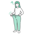 ダイエットや食事制限、運動の成果が出て、履いていたズボンがブカブカになった女性のイラストです。 減量成功、ウエストのサイズダウン、くびれ作り、産後ダイエットなどのイメージとして最適です。エステサロンやフィットネスジムの広告、ダイエットサプリメントのビフォーアフター画像、美容コラムのアイキャッチ素材として幅広くご利用いただけます。