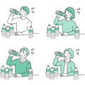 健康維持に必要な五大栄養素(炭水化物、脂質、タンパク質、ビタミン、ミネラル)を、円グラフ形式で分かりやすく分類した図解イラストです。各カテゴリーには代表的な食材(主食、肉魚、野菜、海藻、良質な油など)が描かれており、どの食品からどの栄養素が摂れるかが一目で理解できます。シンプルで癖のない線画タッチと、清潔感のあるミントグリーンの配色で、学校の食育授業、保健室の掲示、病院や薬局での栄養指導、健康コラムの挿絵など、幅広いシーンで信頼できる資料として活用いただけます。