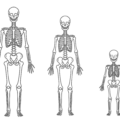 テーマカラーで塗りつぶされた、男性・女性・子供の全身シルエット(正面)のイラストセットです。目鼻などの顔のパーツがない抽象的なデザインのため、特定のキャラクターに依存せず、どんな医療・健康系記事にも自然に馴染みます。ファミリークリニックの案内図や、家族間の感染症の解説、痛みや発疹のある部位に赤丸をつけるなど、図解用のベース素材として自由に加工・活用できる非常に汎用性の高いイラストです。