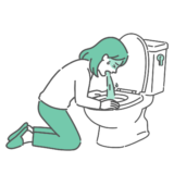 診察室で、体調不良でぐったりしている男の子(幼児~小学生)を連れた母親が症状を訴えている、スクラブ(医療用ユニフォーム)を着用した女性医療従事者のイラストです。 男の子が冷や汗をかき顔色が悪い様子を描いており、高熱を出した際の「発熱外来」や、インフルエンザ・ノロウイルスなどの「感染症対応」、あるいは腹痛や怪我による「救急外来(ER)」の受診シーンに最適です。 看護師によるトリアージ(緊急度判定)や、医師による入院にむけた説明、学校感染症による「出席停止期間」の解説記事などの挿絵として幅広くご利用いただけます。
