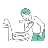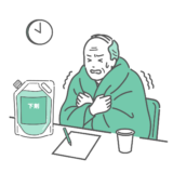 診察室で、深刻な体調不良や痛みを訴えている高齢の男性患者(シニア)と、それを診察するスクラブ姿の女性医療従事者(医師・看護師)のイラストです。 患者は冷や汗をかき、胸を押さえて苦悶の表情を浮かべており、心筋梗塞や狭心症の発作、あるいは呼吸不全などの緊急性のある症状を描いています。 総合病院の救急外来(ER)での受診シーンや、入院中の容態急変、特別養護老人ホームなどの介護施設における「救急車要請の判断」を解説するマニュアルや資料の挿絵として最適です。