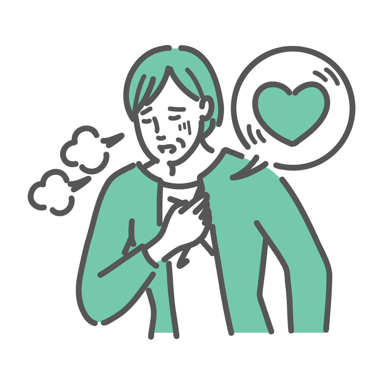 更年期障害、自律神経失調症、動悸、息切れ、過呼吸、不安神経症、狭心症の疑い、ストレスなど、幅広い心身の不調を表現したイラストです。心臓疾患、呼吸器系、精神的な不調に関する解説資料に幅広くご使用ください。
