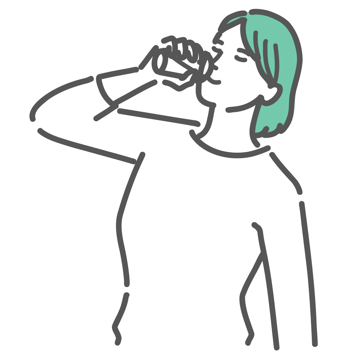 生活習慣生理・PMS、更年期障害によるほてり、熱中症、脱水症状、スポーツ、薬の服用など、水分補給が重要となる様々な健康管理シーンを表現したイラストです。女性の健康情報、美容、予防啓発、水分補給の重要性などの解説資料に幅広くご使用ください。