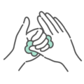 生活習慣正しい手洗いの手順における**「指先と爪の間」の洗浄ステップを示すイラストです。細菌やウイルスが溜まりやすい爪の間を洗浄する工程は特に重要であり、感染症対策マニュアル、健康教育資料で重点的に指導**する際に最適です。