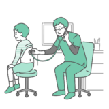 医師、薬剤師、医療従事者などが、患者や利用者に予約完了メール、検査結果の通知、重要なメッセージなどのデジタル通知を案内・促進するシーンに最適なイラストです。医療DX、オンライン予約、連絡方法の説明などでご利用いただけます。