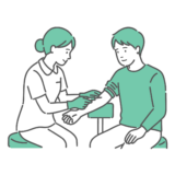 人物・アイテム医師、薬剤師、医療従事者などが、患者や利用者に手順の最終段階、完了後の注意点、治療の終了などを説明するシーンに最適なイラストです。教育資料、マニュアル、ウェブサイトで、**「これで完了です」**という指示を出す際に、セット素材から切り出してご利用いただけます。