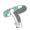 ダイエット・美容フロッグライズ(Frog Raise)の動作における、最も深く前屈した完了姿勢のイラストです。太ももの内側にある内転筋とハムストリングを最大限に伸ばし、強化する段階を示しています。運動指導、筋力トレーニング、ストレッチ解説の資料にご利用ください。