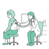患者や利用者からの質問に戸惑う、予期せぬ出来事に驚く、または新しい情報に疑問を呈するシーンに最適なイラストです。医療ニュースの疑問点、健康に関する誤解の指摘、問題提起などでご利用いただけます。