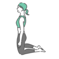 ダイエット・美容Zのポーズ(ニーリング・バック・ベンド)の動作中、体幹と太ももに負荷がかかり始める**中間姿勢(ステップ2)**のイラストです。腹筋や大腿四頭筋を意識したトレーニングの解説、ピラティス指導、連続動作の途中の表現にご利用いただけます。