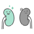 アイテム・アイコン困った表情で疲れを表している、不調な状態の腎臓の擬人化キャラクターイラストです。腎臓病、腎不全、透析、高血圧や糖尿病などの生活習慣病による腎臓への負担を解説する資料、または腎臓の疲れやむくみといった体調不良に関するコンテンツにご利用いただけます。