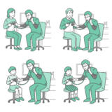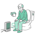介護・福祉冬場のトイレにおけるヒートショック対策のイラスト素材です。急激な温度変化は高齢者の心臓や血管への負担が大きいため、足元に暖房器具(セラミックヒーターなど)を設置して空間を暖めている様子を描いています。冬の健康管理、血圧変動リスクの軽減、介護環境の整備などの資料に最適です。