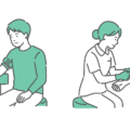 うつ・メンタル不調左側は母親に支えられ落ち着いて採血を受ける男の子、右側は怖がって泣き出している男の子の採血シーン比較イラストです。小児科での診察、予防接種(ワクチン)、採血恐怖症の解説、子供への声かけの重要性といった、小児の心理ケアや接遇マニュアルに関する資料で、感情の対比を表現するのに最適です。