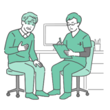 笑顔でキラキラと輝いている健康で正常な状態の胆嚢(たんのう)の擬人化キャラクターイラストです。胆汁の貯蔵と消化の役割、胆石症、胆嚢炎、胆管炎といった胆嚢・胆管系の疾患の予防や解説、健康な食生活に関するコンテンツにご利用いただけます。