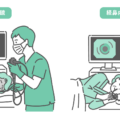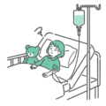 場所・設定病院やクリニックの廊下を描いたシンプルな背景イラストです。両側に病室のドアと転倒防止用の手すりが設置された、奥行きのある構図になっています。人物イラストと合成して使用したり、入院生活、面会、夜間の巡回などのイメージ画像として最適です。
