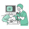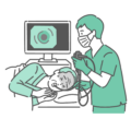 検査・測定口からスコープを挿入する経口内視鏡検査において、鎮静剤を使用せずに行い、若い男性患者(20代〜40代)が強い嘔吐反射(オエッとなる反応)や苦痛を感じているイラストです。 冷や汗をかき、辛そうな表情を浮かべています。 「男性の胃カメラ体験談」「鎮静剤なしを選んで後悔したケース」「バリウム検査後の再検査の辛さ」などの解説や、楽な検査方法(経鼻や鎮静下)との比較画像として最適です。