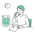 大腸内視鏡検査(大腸カメラ)の前処置として、腸管洗浄剤(下剤)をトラブルなくスムーズに服用している男性のイラストです。 容器に**「下剤」**という文字が入っており、状況が一目で伝わります。 苦痛な表情はなく、リラックスしてコップの薬を飲んでいる様子を描いています。 「飲みやすい味の新しい下剤」「楽に飲むためのコツ(冷やす・飴を舐めるなど)」「意外と辛くなかった体験談」などを紹介するWeb記事や、患者さんの不安を軽減するための案内資料に最適です。