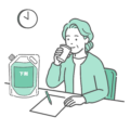 大腸内視鏡検査(大腸カメラ)の前処置において、腸管洗浄剤(下剤)を服用中に副作用として「寒気(悪寒)」を感じている高齢女性(シニア層)のイラストです。 高齢者は筋肉量が少なく体温調整が難しいため、大量の水分摂取によって急激に体が冷えてしまうことがあります。 「高齢者の検査には羽織るものを持参しましょう」「温かい飲み物で対策を」「無理せずスタッフに声をかけてください」といった、高齢患者向けの安全管理や家族への案内資料に最適です。