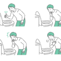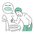 トイレの便器を覗き込み、排泄物が健康的な「理想的な便(ブリストルスケール Type 4)」であることを確認して、笑顔でOKサインを出している男性のイラストです。 「理想的な便」というテキストと、滑らかなバナナ状の便のイラストが入った吹き出しが付いており、腸活の成果が出たことや、腸内環境が良好であることを視覚的に分かりやすく伝えます。 便秘解消サプリメントの広告、健康コラム、栄養指導の資料などで、説明テキストなしでも意味が伝わる便利な素材です。