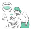 トイレの便器を覗き込み、排泄物が健康的な「理想的な便(ブリストルスケール Type 4)」であることを確認して、笑顔でOKサインを出している女性のイラストです。 「理想的な便」というテキストと、滑らかなバナナ状の便のイラストが入った吹き出しが付いており、女性の関心が高い「腸活」の成果が出たことや、辛い便秘が解消されてデトックスできたことを視覚的に分かりやすく伝えます。 美容ブログ、ダイエット記事、食物繊維サプリメントの広告などで、「目指すべきゴール」を示すアイキャッチ画像として最適です。