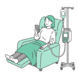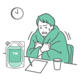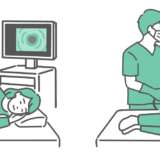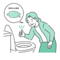 トイレの便器を覗き込み、排泄物がまだ「泥状便(ブリストルスケール Type 6)」であることを確認して、判断に迷ったり困ったりしているシニア女性のイラストです。 「泥状便」というテキストとイラストが入った吹き出しが付いており、大腸内視鏡検査の前処置において「まだ腸内がきれいになりきっていない(検査NG)」状態を明確に示しています。 高齢女性は下剤による体力消耗や脱水を起こしやすいため、「この状態ではまだ検査できませんが、無理せず看護師に相談してください」と伝えるための安全管理マニュアルや、介護現場での下痢・軟便トラブルを記録・解説する資料の挿絵として最適です。