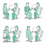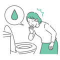トイレの便器を覗き込み、排泄物に血が混じっている(血便・下血)ことを確認して、衝撃を受けているシニア男性のイラストです。 「血の雫」のアイコンが入った吹き出しが付いており、高齢者にリスクが高い「大腸がん」「直腸がん」や、突然の腹痛を伴う「虚血性大腸炎」、あるいは「内痔核」からの出血を視覚的に表現しています。 また、消化器系だけでなく、高齢男性に多い「前立腺がん」「膀胱がん」による血尿のサインとしても使用可能です。 自治体のがん検診啓発ポスター、介護家族に向けた「こんな時は救急相談を」という注意喚起チラシ、泌尿器科・消化器内科のWebサイトにおける症状解説のアイキャッチとして最適です。