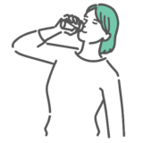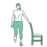 介護士が椅子に座った高齢者の体をスポンジやタオルで拭き、清潔保持をサポートしている清拭(せいしき)または入浴介助のイラストです。