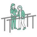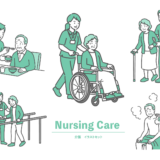 病院や介護施設、在宅での衛生管理、スキンケア、清潔保持の手順を説明する資料に最適です。利用者の尊厳を守り、安全に配慮した介助の様子を表現しています。