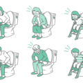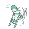 ステップ付き補助便座に座り、排便の痛みや苦しさに顔をしかめている女の子のイラストです。 硬い便が出なくて強くいきんでいる「小児便秘」や、急な発熱や嘔吐を伴う「ウイルス性胃腸炎(ノロ・ロタ・アデノ)」による下痢、あるいはトイレへの恐怖心から緊張している様子を描いています。 小児科や薬局での「浣腸・整腸剤」の使用ガイド、保育園での「感染性胃腸炎流行中」の掲示物、育児ブログにおける「トイトレが後退してしまった時の対処法」記事の挿絵として最適です。 「お腹が痛いと言えない」子供のサインを可視化し、早期対応を促すためのビジュアルとして活用できます。