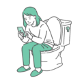 洋式トイレで用を足しながら、スマートフォンを操作している若い男性のイラストです。 排便中にスマホに夢中になり、ついついトイレに長居してしまっている「現代特有の生活習慣」を描いています。 肛門科における「痔(いぼ痔・切れ痔)」の主な原因である「トイレの滞在時間増加(肛門のうっ血)」を警告するポスターや、消化器内科の生活指導資料に最適です。 また、「トイレのスマホ操作は菌が付着して不衛生」という衛生面の注意喚起や、仕事やSNSから離れられない「スマホ依存」をテーマにした記事の挿絵としても幅広く活用できます。