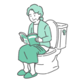 洋式トイレに座る若い男性の「リラックスしている状態(快便)」と「苦しんでいる状態(便秘・腹痛)」を左右に並べた比較イラストです。 腸内環境の改善や便秘治療による「ビフォーアフター」を表現するのに最適です。 左側はスムーズな排便でスッキリしている笑顔、右側は強くいきんでも出ない苦痛や急な腹痛で脂汗をかいている様子を描いています。 便秘薬、整腸剤、サプリメントの広告バナーや、消化器内科における「治療によるQOL(生活の質)向上」を説明する資料、あるいは「腸活」のメリットを視覚的に伝えるアイキャッチ画像として幅広く活用できます。