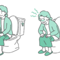 洋式トイレに座るシニア男性の「リラックスしている状態(快便・健康)」と「苦しんでいる状態(便秘・前立腺肥大)」を左右に並べた比較イラストです。 泌尿器科における「前立腺肥大症治療」や、消化器内科における「便秘改善」によるビフォーアフター(症状緩和)を表現するのに最適です。 左側はスムーズな排泄でスッキリしている笑顔、右側は強くいきんでも出ない苦痛や、ヒートショックのリスクがある「無理な力み」を描いています。 介護施設における「排泄ケアの成功事例」の紹介や、高齢者向け住宅リフォーム(トイレ暖房・手すり設置)の提案資料において、「安全で快適なトイレタイム」を訴求するイメージ画像としても幅広く活用できます。