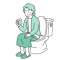 洋式トイレで用を足した後、拭いたトイレットペーパーを手に持ち、付着物を確認している若い女性のイラストです。 生理予定日ではないのに出血がある「不正出血」に驚いている様子や、「おりもの」の色や量に異常を感じて不安になっているシーンを描いています。 婦人科における「子宮頸がん・子宮内膜症」の兆候解説や、性感染症(STD)・カンジダ膣炎などのセルフチェックを促す啓発資料に最適です。 また、妊活中における「着床出血」の確認シーンや、消化器内科や肛門科における「血便・切れ痔」の自覚症状を説明するヘルスケア記事の挿絵としても幅広く活用できます。