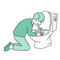 季節・アレルギー症状トイレで激しい吐き気に襲われ、嘔吐している男の子のイラスト素材です。子供に多いロタウイルスやノロウイルスなどの感染性胃腸炎、食中毒、周期性嘔吐症(自家中毒)、熱中症、車酔いなど、小児科や保育園・学校での保健だより、家庭での看病マニュアルに最適です。