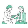 女性の健康・更年期女性看護師が若い女性患者の腕(肘の内側)に針を刺し、採血を行っているシーンのイラストです。健康診断、婦人科検診、血液検査、内科、病院での検査風景の解説資料にご利用いただけます。女性向けの医療情報コンテンツで特に使いやすいバリエーションです。