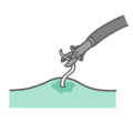 内視鏡検査(胃カメラ・大腸カメラ)において、粘膜の組織を微量採取(生検)する際に使用する処置具「生検鉗子」のイラスト素材です。先端が小さなカップ状になっており、組織を安全につまみ取ることができる構造を描いています。がん細胞の有無を調べる「病理組織検査」の説明や、当日の処置内容を解説する資料、医療機器の紹介に最適です。