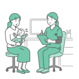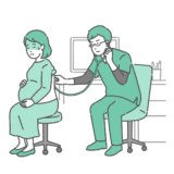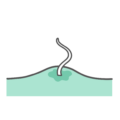 アイテム・アイコン食中毒「胃アニサキス症」の症状を表現したイラスト素材です。胃を擬人化したキャラクターの中にアニサキスが侵入し、冷や汗をかいて苦しんでいる様子を描いています。アニサキスは胃壁に頭を突っ込んだり噛み付いたりすることで、みぞおちの激しい痛みや吐き気(悪心)を引き起こします。食中毒の症状解説や、消化器内科のWebサイトでの疾患説明に最適です。