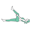 仰向けでタオルを使用し、硬くなりがちな太ももの裏側(ハムストリングス)を安全かつ深く伸ばすストレッチイラスト素材です。腰痛予防、股関節の柔軟性向上、自律神経の調整、運動後のクールダウンにご活用いただけます。