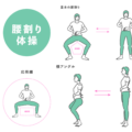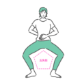 腰割り体操のスタートポジションに立つ女性のイラスト 衛生・予防腰割り体操やスクワットなど、下半身のトレーニングを始める際の基本の立ち姿勢をとっている女性のフリーイラスト素材です。 2025.12.15 腰割り体操を始める際の、足を広げ、手を腰に当てた基本の立ち姿勢(スタートポジション)のイラストです。運動方法の解説、姿勢の矯正、腰痛予防などの記事にご利用ください。 PNGファイルをダウンロード (無料)