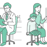 緑色のスクラブ(手術着・医療用ユニフォーム)を着用した男性医師が、成人女性の患者を診察しているイラストの2パターンセットです。 左側は「カウンセリングや定期健診などの落ち着いた相談シーン」、右側は「動悸・息切れ、胸の痛み、強い不安感などの症状を訴えている緊急シーン」を描いています。 循環器内科での「不整脈・狭心症」の解説はもちろん、女性特有の「更年期障害(ホットフラッシュ・動悸)」や、心療内科領域の「パニック障害」など、平常時と発作時を対比させて説明する医療資料に最適です。