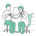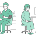 スクラブ(手術着・医療用ユニフォーム)を着用した男性医師が、様々な年代・性別の患者を診察しているイラスト素材の8点フルセットです。 小児科(赤ちゃん・子供)、産婦人科(妊婦)、内科(成人男女)、老年内科・整形外科(高齢者男女)と、あらゆる患者層を網羅しています。 総合病院のパンフレットや、地域包括ケアシステムの解説図、あるいは「かかりつけ医」としての幅広い対応力をアピールするホームページのメインビジュアルとして最適です。統一感のあるデザインで、資料全体のクオリティを底上げします。