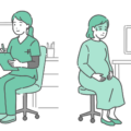 スクラブ(医療用ユニフォーム)を着用した女性医療従事者が、女の子(幼児~小学生)を連れた母親を診察しているイラストの2パターンセットです。 左側は「定期健診やアレルギー相談などの穏やかなシーン」、右側は「高熱や腹痛などでぐったりしている緊急・不調シーン」を描いています。 「学校や幼稚園を休ませる基準」の解説や、インフルエンザ・水疱瘡・おたふく風邪などの「登園許可」に関する説明、あるいは小児救急における「緊急度の見分け方(トリアージ)」の資料として最適です。 医師だけでなく、看護師や養護教諭など、子供の健康を守る幅広い職種のイメージとしてご利用いただけます。