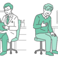 白衣(ドクターコート)を着用した男性医師が、高齢の女性患者(シニア)を診察しているイラストの2パターンセットです。 左側は「定期的な通院や健康相談などの穏やかなシーン」、右側は「胸の痛みや呼吸苦、冷や汗などの急性症状を訴えている緊急シーン」を描いています。 高齢者に多い「心不全」や「狭心症」の予兆発見、あるいは「認知症」の落ち着いている時と不穏時の対比、夏場の「熱中症」リスクの解説など、平常時と緊急時を比較説明する医療・介護資料に最適です。